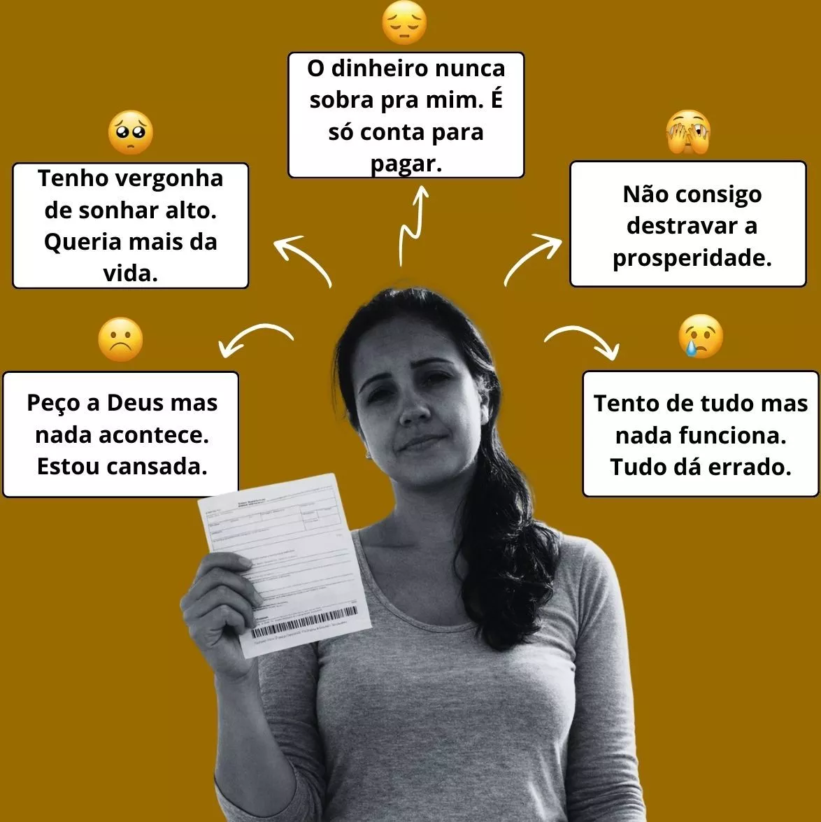 ✓ Está cansada de carregar crenças, medos e inseguranças que atrasam seus sonhos e sua vida financeira.