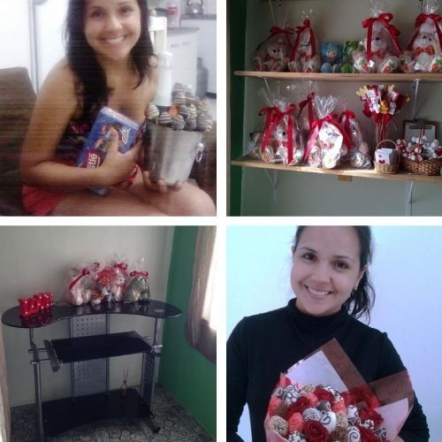 Eu comecei a empreender em uma kitnet com apenas 50 reais vendendo brigadeiros no copinho por R$ 2,00 cada e após alguns meses, buquês de chocolate por R$ 19,90 cada.